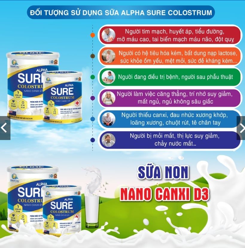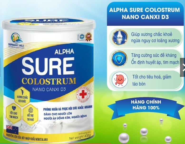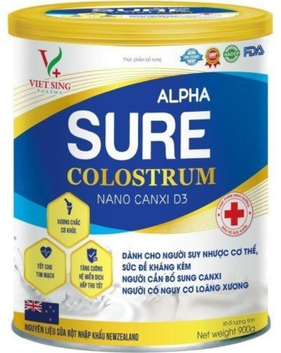 Sữa non Alphasure colostrum nano canxi D3 900G
